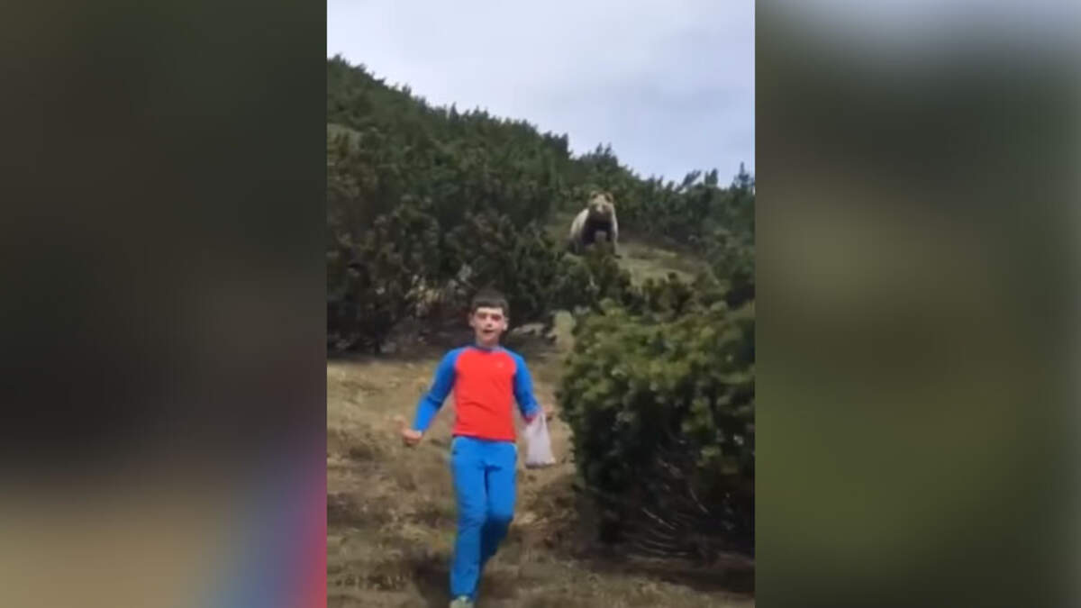 A family was hiking in the mountains near Sporminore in Northern Italy when they encountered a curious brown bear. The bear began to stalk 12-year-old Alessandro Franzoi, who was gathering pine cones in the bushes while his family was preparing for a picnic. His stepfather recorded as the boy slowly and calmly walked away from the bear.